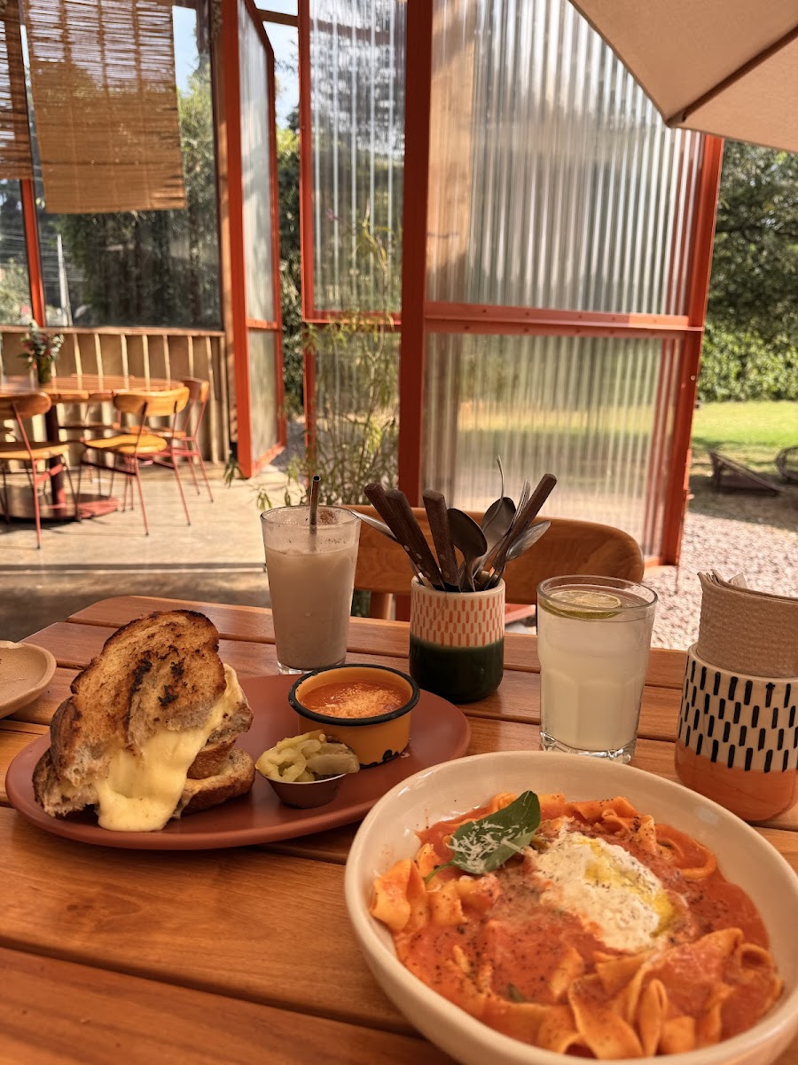 The place was very pretty and Chill! There’s games for kids and pretty green area for dogs or just to chill :) The Food was delicious and pretty well served!! I couldn’t even my Chilaquiles, I had to take them away