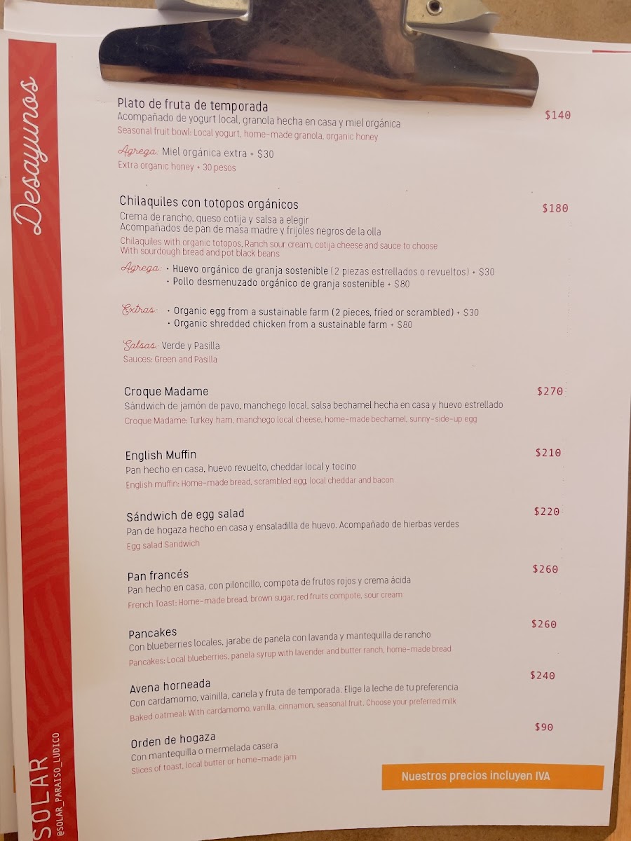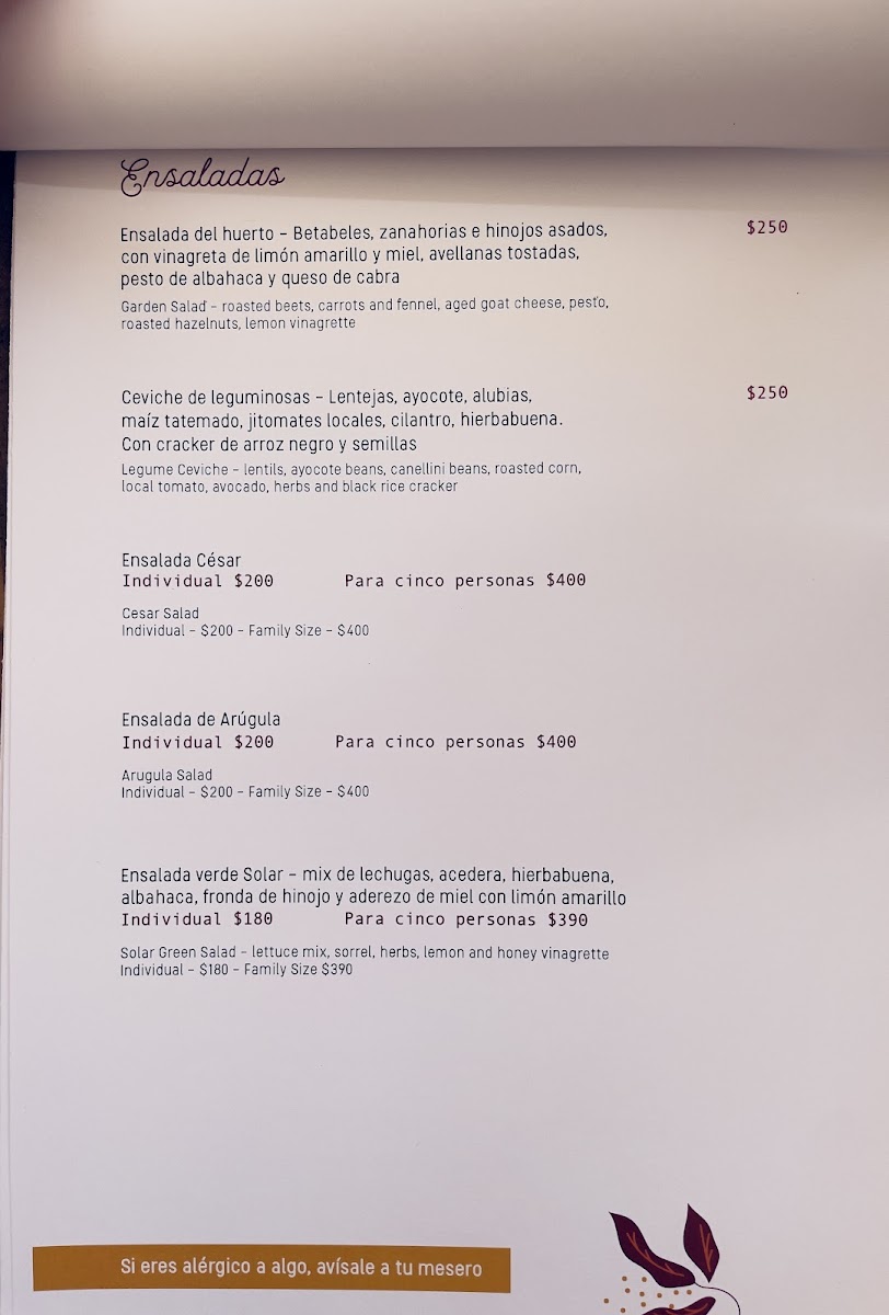 SOLAR Menu