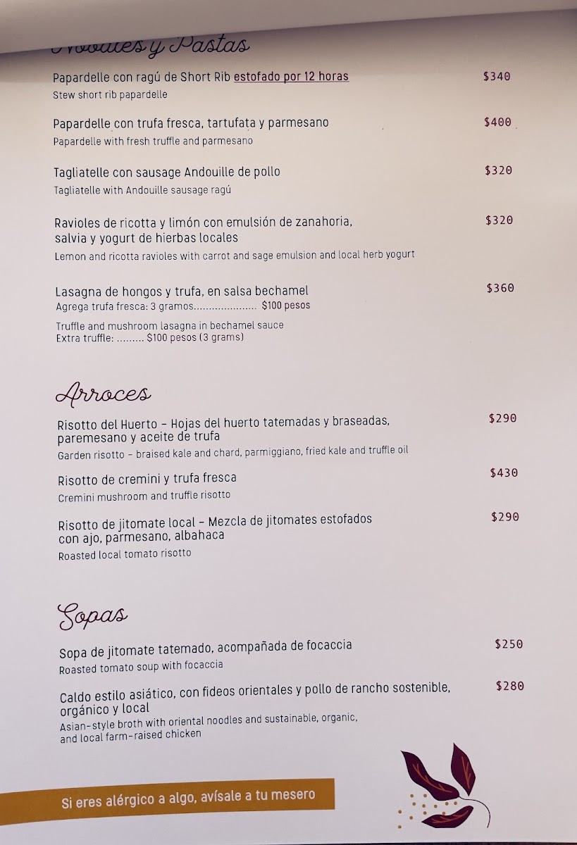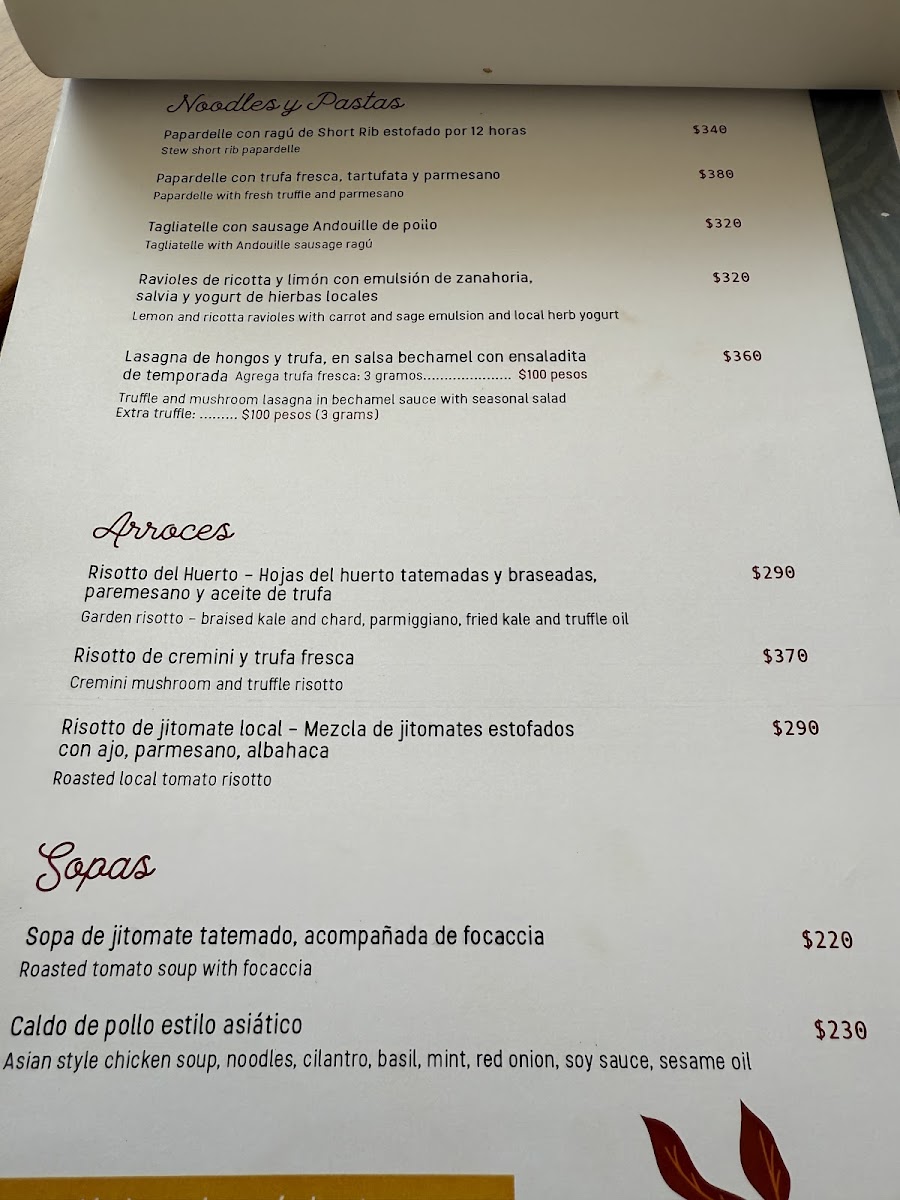 You might start your day with comforting chilaquiles—available in several variations including chile pasilla and classic rojo—or savor a warm bowl of tomato soup paired with grilled cheese. For a midday meal, items like the ensalada mediterranea or tostadas de atún provide refreshing, balanced flavors, while mains such as pozole de setas and the signature mac & cheese offer satisfying, homey touches. The menu also includes vegetarian choices and a lovely selection of desserts and beverages, such as a smooth carajillo or creamy helado de crema, perfect for lingering in the outdoor terrace or garden spaces.